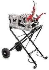 300 Compact shown with optional Model 250 Folding Wheel Stand. Heavy-Duty proven performance. Lightweight, portable design. Fast transporting and set-up. Self-contained oil system with adjustable flow control. Versatility for threading and grooving. Motor Control: Heavy duty rotary FOR/OFF/REV with integral foot switch. Chuck: Hammer-type with replaceable, rocker-action jaw inserts. Oiling System: Through-the-head, with integral oil reservoir, self-priming, constant-flow, gerotor pump. Cutter: Model 360, roll-type cut off, self-centering, full-floating. Reamer: Model 344, 1/8-2, five flute cone, right hand only.