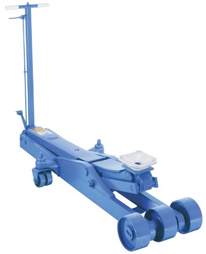 20-Ton hydraulic service jack is built of the highest quality heavy gauge steel. These jacks feature precision hydraulics for a lifetime of hard work. The low-profile stance and extended height add to versatility. They lift everything from cars to trucks to heavy-duty comillimeterercial vehicles and with huge metal wheels and swivel casters roll effortlessly on internal bearings. Either the foot pedal or jack handle may be used for pumping action. Counter-balanced, spring-assisted handle has a three-position lock. The jack has a lifting range of 7-1/2 inch to 25-1/4 inch saddle is 9-1/4 inch, overall reach of 69 inch, and a handle length 40 inch. Overall dimensions are 72 inch long x 25 wide x 10 inch high with a weight of 531 pounds.