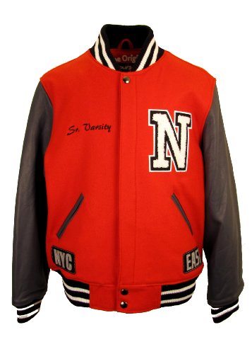 This varsity from Hudson Outerwear shouts to New York. Featuring a high quality wool body with genuine leather sleeves. Beautiful attention to detail with our super cool lining. Be the envy of all while wearing this jacket with N.Y pride.